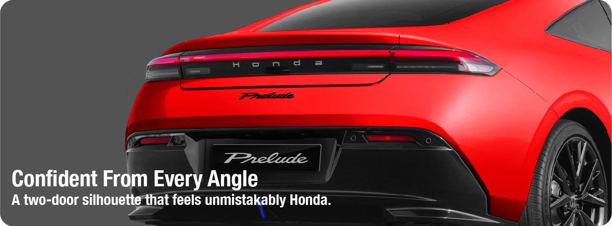 Honda Prelude kembali ke esensinya: kesenangan berkendara yang murni. Desain yang refined, hybrid khas Honda yang mendukung performa dan setiap detail terasa diciptakan dengan intensi karena Honda Prelude tidak sekedar mengikuti zaman. Prelude mendefinisikannya.